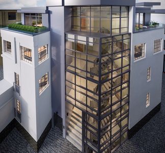 New glazed extension and staircase plus roof extension(s) and a full internal refurbishment, including a new lift installation, to this existing five story office building.